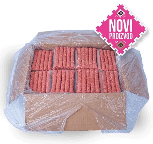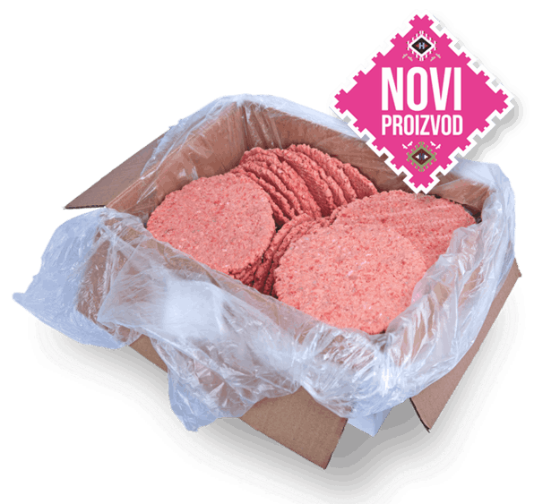 Sastav: usitnjeno oblikovano goveđe i juneće meso sa začinima